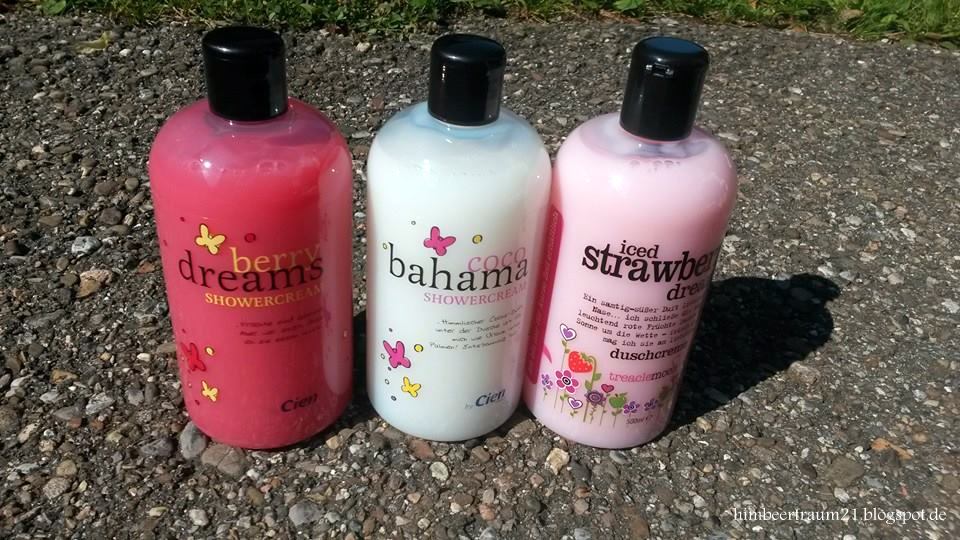 Cien berry dreams ShowergelKostet 1,11 Euro im LidlDa diese Duschgel den Treaclemoon Duschgel sehr ähnlich ist musste ich es unbedingt haben, vor allem es riecht gut. Cien coco bahama ShowergelKostet 1,11 Euro im LidlDas musste ich ebenfalls haben, riecht auch sehr lecker.Treaclemoon iced strawbeery dream duschcremeKostet 3,95 EuroDarüber hab ich ja nen Bericht geschrieben, und natürlich musste es nochmal haben, bevor es aus dem Sortiment geht. :) Ist ja leider nur eine LE :(