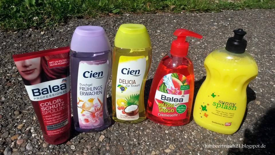 Cien Frühlingserwachen DuschgelKostet 0,75 Euro im LidlFand diesen Duft auch sehr toll, musste auch mit. :)Cien Delicia do Brasil ( Haut und Haare)Kostet 0,75 Euro bei LidlDer Geruch auch sehr lecker, ich werde es aber nur als Duschgel nutzen.Balea Melon Tango CremseifeKostet 0,65 Euro bei dmIch habe diese Seife momentan in Benutzung und musste mir eine auf Reserve holen.