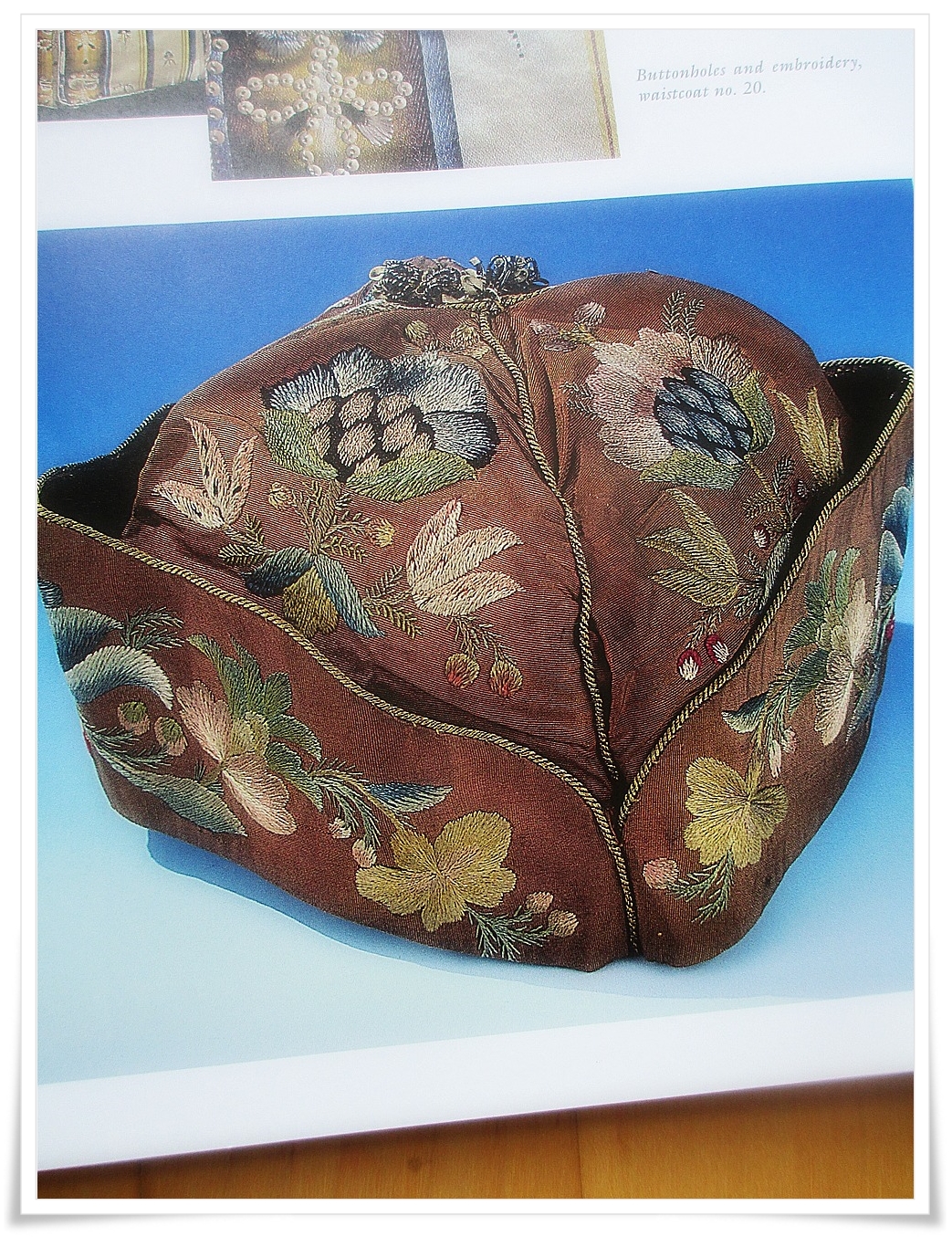 Hier die Vorlage für das Schnittmuster aus dem "Costume close up"-Buch; diese Kappe datiert zw 1740-1760