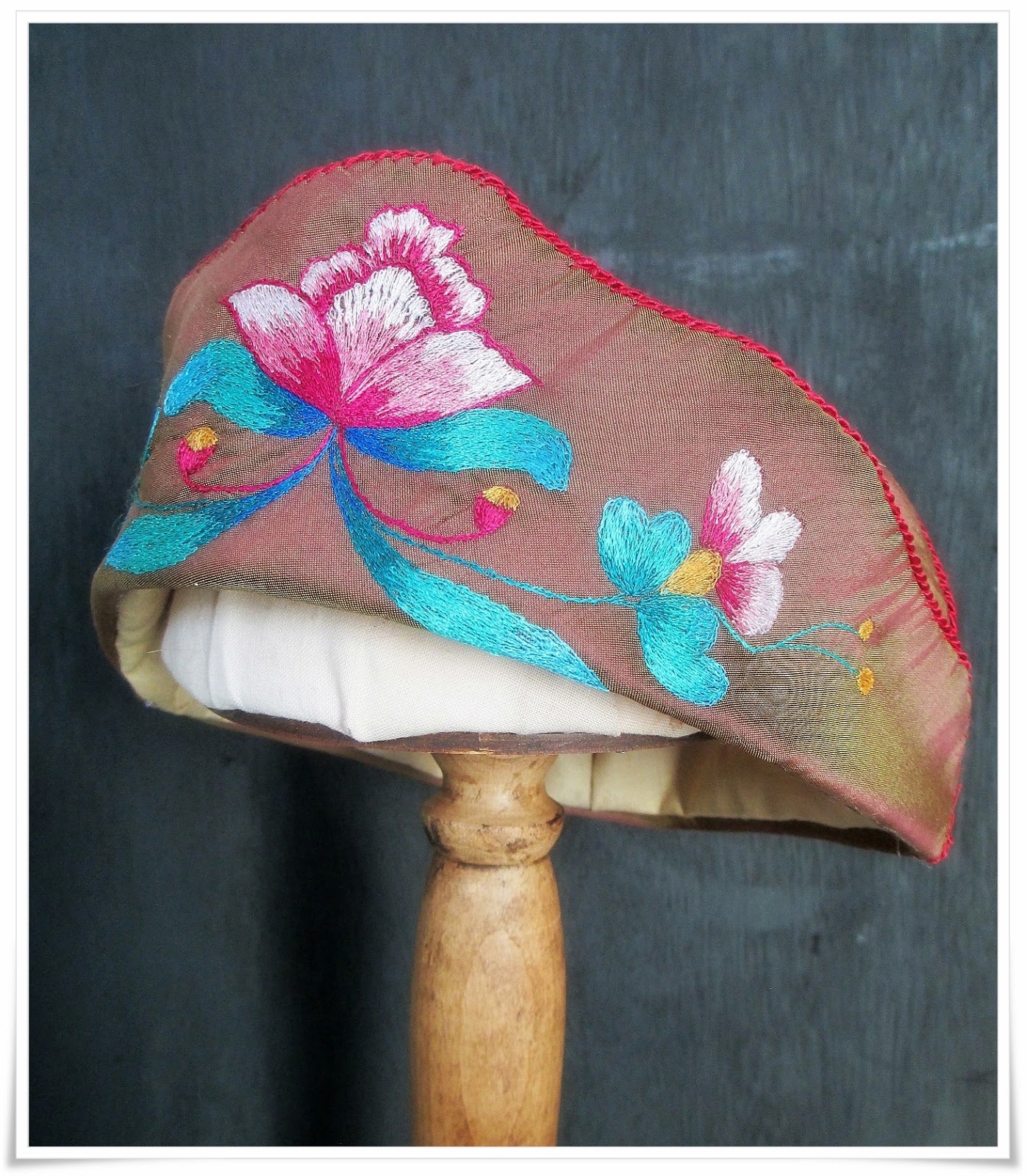 Diese Mützen gab es in den verschiedensten Formen, vom Turban bis zu lang zipfeligen Nachtmützchen; einfach bis sehr stark verziert.