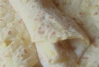- Jedes Teigstück Bällchen nehmen und auf bemehlte Arbeitsplatz mit Nudelholz zu eine runden Teigblättern ausrollen. Den Teig auf vorgeheizten Pfanne beidseitig leichtbraun braten, auf einem Küchentuch ruhen lassen.