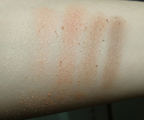 Von links nach rechts: passion pearl, peachy sheen, terracotta satin, steamy copper und deep bronze