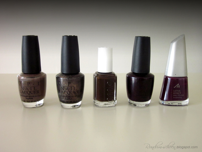 Hallo Schönheiten.Am dritten Tag der Beautyblogger Herbstwoche möchte ich euch gerne meine Favoriten in der Sparte Nagellack vorstellen. Wie ihr seht überwiegen hier warme, dunklere Farbtöne, wie z.B. Braun, Schwarzrot oder Burgunder. Wie bereits bei den Augen ist hier aber auch wieder ein Goldton vertreten. Ein warmes Pink, ein kräftiges Orange sowie ein dunkles Schimmerblau bilden für mich den Kontrast zu den sonst eher erdigen Farben.