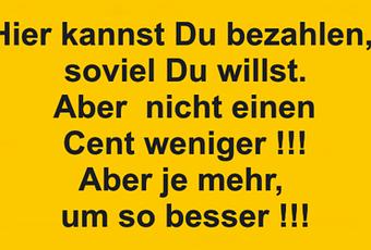 Auf Facebook teilen Vorige Folgende Hier kannst Du bezahlen, soviel Du willst.... Autor des Artikels : istdaslustig Zum Original-Artikel Hier kannst Du bezahlen, soviel Du willst. Aber nicht einen Cent weniger !!! Aber je mehr, um so besser !!! Hier geht es zum Artikel Mehr Lustiges auf www.istdaslustig.de Auf Facebook teilen Vorige Folgende Das könnte Ihnen gefallen Mehr