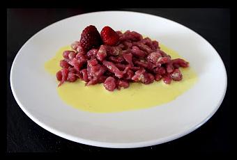 So bald die Spätzle an der Oberfläche schwimmen, entnehmen und abschrecken.