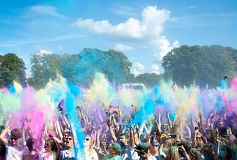 Wie in Indien und als Zeichen der Gemeinschaft, werfen tausende Gäste zeitgleich tausend bunte Pulverbeutel in die Luft und schaffen neben einem Farbenmeer ihren ganz eigenen Gänsehautmoment.