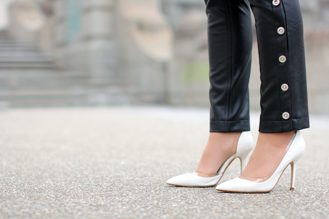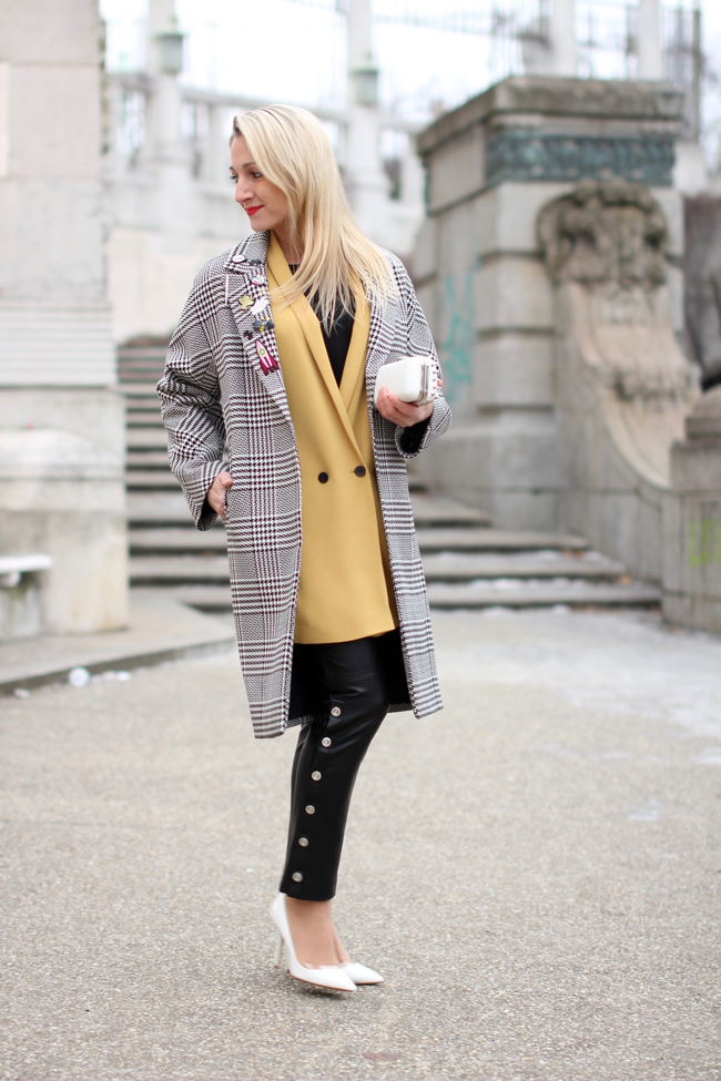 fake leather pants, oversize blazer & coat - Mango / top & high heels - Zara / clutch - Forever 21