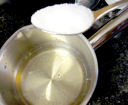 Nun kann die Essigmischung vorbereitet werden. Dafür 3 EL Reisessig, 3 EL Zucker und 1 TL Salz vermischen, bis sich alle Zutaten aufgelöst haben. Diese Mischung zum fertig gekochten Reis hinzufügen und auskühlen lassen. Der Reis ist somit recht klebrig und hält gut zusammen.