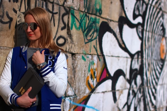 skirt - Asos / pullover - S. Oliver / jacket, clutch, shoes & statement ring - Forever 21 / watch - no name / bracelet - Swarovski / sunglasses - H&M