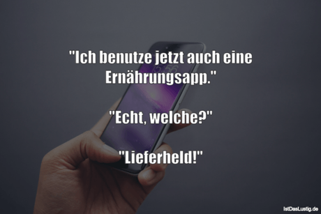 Auf Facebook teilen Vorige Folgende "Ich benutze jetzt auch eine Ernährungsapp."... Autor des Artikels : istdaslustig Zum Original-Artikel "Ich benutze jetzt auch eine Ernährungsapp." "Echt, welche?" "Lieferheld!" Hier geht es zum Artikel Mehr Lustiges auf www.istdaslustig.de Auf Facebook teilen Vorige Folgende Das könnte Ihnen gefallen Mehr