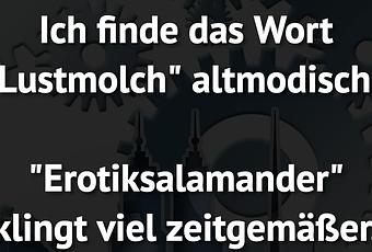 Auf Facebook teilen Vorige Folgende Ich finde das Wort "Lustmolch" altmodisch.... Autor des Artikels : istdaslustig Zum Original-Artikel Ich finde das Wort "Lustmolch" altmodisch. "Erotiksalamander" klingt viel zeitgemäßer. Hier geht es zum Artikel Mehr Lustiges auf www.istdaslustig.de Auf Facebook teilen Vorige Folgende Das könnte Ihnen gefallen Mehr