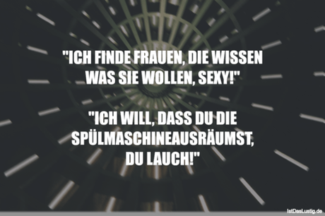 Auf Facebook teilen Vorige Folgende "ICH FINDE FRAUEN, DIE WISSEN WAS SIE WOLLEN,... Autor des Artikels : istdaslustig Zum Original-Artikel "ICH FINDE FRAUEN, DIE WISSEN WAS SIE WOLLEN, SEXY!" "ICH WILL, DASS DU DIE SPÜLMASCHINEAUSRÄUMST, DU LAUCH!" Hier geht es zum Artikel Mehr Lustiges auf www.istdaslustig.de Auf Facebook teilen Vorige Folgende Das könnte Ihnen gefallen Mehr
