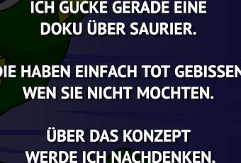 Auf Facebook teilen Vorige Folgende ICH GUCKE GERADE EINE DOKU ÜBER SAURIER. DIE... Autor des Artikels : istdaslustig Zum Original-Artikel ICH GUCKE GERADE EINE DOKU ÜBER SAURIER. DIE HABEN EINFACH TOT GEBISSEN, WEN SIE NICHT MOCHTEN. ÜBER DAS KONZEPT WERDE ICH NACHDENKEN. Hier geht es zum Artikel Mehr Lustiges auf www.istdaslustig.de Auf Facebook teilen Vorige Folgende Das könnte Ihnen gefallen Mehr