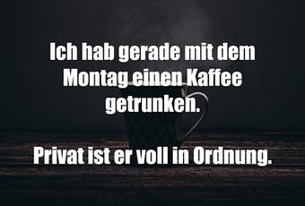 Auf Facebook teilen Vorige Folgende Ich hab gerade mit dem Montag einen Kaffee... Autor des Artikels : istdaslustig Zum Original-Artikel Ich hab gerade mit dem Montag einen Kaffee getrunken. Privat ist er voll in Ordnung. Hier geht es zum Artikel Mehr Lustiges auf www.istdaslustig.de Auf Facebook teilen Vorige Folgende Das könnte Ihnen gefallen Mehr