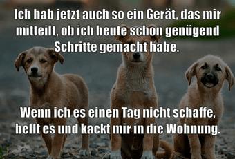 Auf Facebook teilen Vorige Folgende Ich hab jetzt auch so ein Gerät, das mir... Autor des Artikels : istdaslustig Zum Original-Artikel Ich hab jetzt auch so ein Gerät, das mir mitteilt, ob ich heute schon genügend Schritte gemacht habe. Wenn ich es einen Tag nicht schaffe, bellt es und kackt mir in die Wohnung. Hier geht es zum Artikel Mehr Lustiges auf www.istdaslustig.de Auf Facebook teilen Vorige Folgende Das könnte Ihnen gefallen Mehr
