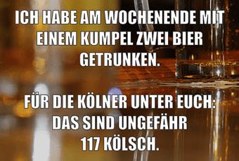 Auf Facebook teilen Vorige Folgende ICH HABE AM WOCHENENDE MIT EINEM KUMPEL ZWEI... Autor des Artikels : istdaslustig Zum Original-Artikel ICH HABE AM WOCHENENDE MIT EINEM KUMPEL ZWEI BIER GETRUNKEN. FÜR DIE KÖLNER UNTER EUCH: DAS SIND UNGEFÄHR 117 KÖLSCH. Hier geht es zum Artikel Mehr Lustiges auf www.istdaslustig.de Auf Facebook teilen Vorige Folgende Das könnte Ihnen gefallen Mehr