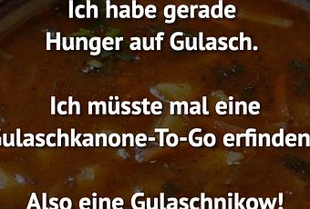 Auf Facebook teilen Vorige Folgende Ich habe gerade Hunger auf Gulasch. Ich müsste... Autor des Artikels : istdaslustig Zum Original-Artikel Ich habe gerade Hunger auf Gulasch. Ich müsste mal eine Gulaschkanone-To-Go erfinden. Also eine Gulaschnikow! Hier geht es zum Artikel Mehr Lustiges auf www.istdaslustig.de Auf Facebook teilen Vorige Folgende Das könnte Ihnen gefallen Mehr