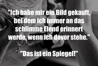 Auf Facebook teilen Vorige Folgende "Ich habe mir ein Bild gekauft, bei dem ich... Autor des Artikels : istdaslustig Zum Original-Artikel "Ich habe mir ein Bild gekauft, bei dem ich immer an das schlimme Elend erinnert werde, wenn ich davor stehe." "Das ist ein Spiegel!" Hier geht es zum Artikel Mehr Lustiges auf www.istdaslustig.de Auf Facebook teilen Vorige Folgende Das könnte Ihnen gefallen Mehr