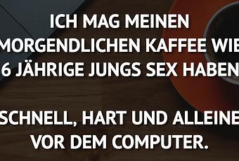 Auf Facebook teilen Vorige Folgende ICH MAG MEINEN MORGENDLICHEN KAFFEE WIE 16... Autor des Artikels : istdaslustig Zum Original-Artikel ICH MAG MEINEN MORGENDLICHEN KAFFEE WIE 16 JÄHRIGE JUNGS SEX HABEN. SCHNELL‚ HART UND ALLEINE VOR DEM COMPUTER. Hier geht es zum Artikel Mehr Lustiges auf www.istdaslustig.de Auf Facebook teilen Vorige Folgende Das könnte Ihnen gefallen Mehr