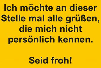 Auf Facebook teilen Vorige Folgende Ich möchte an dieser Stelle mal alle grüßen,... Autor des Artikels : istdaslustig Zum Original-Artikel Ich möchte an dieser Stelle mal alle grüßen, die mich nicht persönlich kennen. Seid froh! Hier geht es zum Artikel Mehr Lustiges auf www.istdaslustig.de Auf Facebook teilen Vorige Folgende Das könnte Ihnen gefallen Mehr