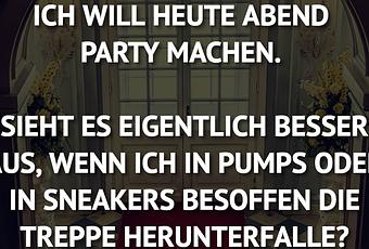 Auf Facebook teilen Vorige Folgende ICH WILL HEUTE ABEND PARTY MACHEN. SIEHT ES... Autor des Artikels : istdaslustig Zum Original-Artikel ICH WILL HEUTE ABEND PARTY MACHEN. SIEHT ES EIGENTLICH BESSER AUS, WENN ICH IN PUMPS ODER IN SNEAKERS BESOFFEN DIE TREPPE HERUNTERFALLE? Hier geht es zum Artikel Mehr Lustiges auf www.istdaslustig.de Auf Facebook teilen Vorige Folgende Das könnte Ihnen gefallen Mehr