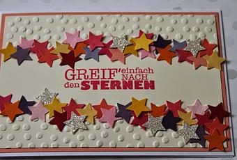 Zum Geburtstag einer "sehr alten" Freundin kam ich einfach an dem Spruch "Greif einfach nach den Sternen" aus dem Set "Alles nur Sprüche" nicht vorbei. Denn genau das wünsche ich ihr - das sie nach den Sternen greift, denn nichts soll für sie unmöglich erscheinen.