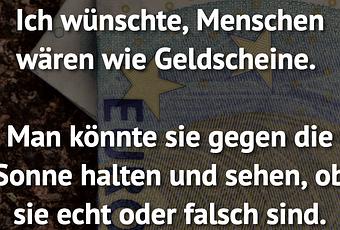Auf Facebook teilen Vorige Folgende Ich wünschte, Menschen wären wie Geldscheine.... Autor des Artikels : istdaslustig Zum Original-Artikel Ich wünschte, Menschen wären wie Geldscheine. Man könnte sie gegen die Sonne halten und sehen, ob sie echt oder falsch sind. Hier geht es zum Artikel Mehr Lustiges auf www.istdaslustig.de Auf Facebook teilen Vorige Folgende Das könnte Ihnen gefallen Mehr