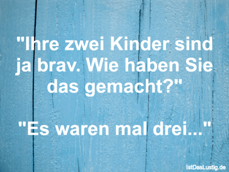 Auf Facebook teilen Vorige Folgende "Ihre zwei Kinder sind ja brav. Wie haben Sie... Autor des Artikels : istdaslustig Zum Original-Artikel "Ihre zwei Kinder sind ja brav. Wie haben Sie das gemacht?" "Es waren mal drei..." Hier geht es zum Artikel Mehr Lustiges auf www.istdaslustig.de Auf Facebook teilen Vorige Folgende Das könnte Ihnen gefallen Mehr