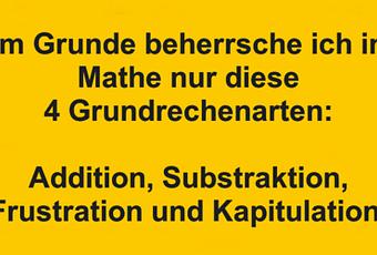 Auf Facebook teilen Vorige Folgende Im Grunde beherrsche ich in Mathe nur diese 4... Autor des Artikels : istdaslustig Zum Original-Artikel Im Grunde beherrsche ich in Mathe nur diese 4 Grundrechenarten: Addition, Substraktion, Frustration und Kapitulation. Hier geht es zum Artikel Mehr Lustiges auf www.istdaslustig.de Auf Facebook teilen Vorige Folgende Das könnte Ihnen gefallen Mehr