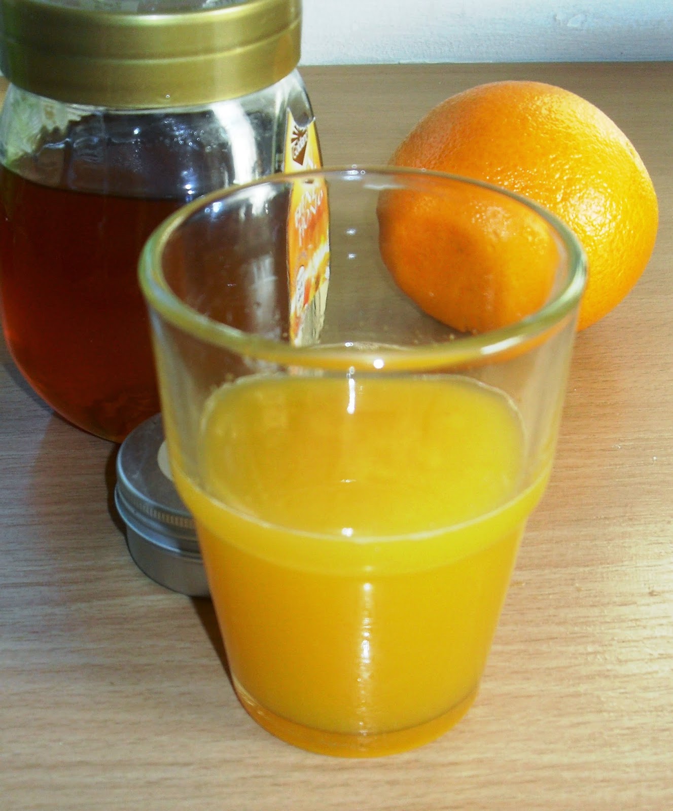 120 ml frisch gepresster Orangensaft1 TL Honig1 Prise Kurkumafrischer Ingwer (1 cm Stückchen, fein gerieben)Zubereitung:Man nehme frisch gepressten Orangensaft und verrühre ihn mit frischem Ingwer, einer Prise Kurkuma und Honig.Dieser Drink sollte dann so schnell wie möglich getrunken werden (wir wollen ja nicht, das die ganzen Wirkstoffe/Vitamine sich verflüchtigen)!