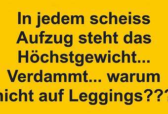 Auf Facebook teilen Vorige Folgende In jedem scheiss Aufzug steht das... Autor des Artikels : istdaslustig Zum Original-Artikel In jedem scheiss Aufzug steht das Höchstgewicht... Verdammt... warum nicht auf Leggings??? Hier geht es zum Artikel Mehr Lustiges auf www.istdaslustig.de Auf Facebook teilen Vorige Folgende Das könnte Ihnen gefallen Mehr