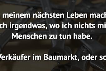Auf Facebook teilen Vorige Folgende In meinem nächsten Leben mache ich irgendwas,... Autor des Artikels : istdaslustig Zum Original-Artikel In meinem nächsten Leben mache ich irgendwas, wo ich nichts mit Menschen zu tun habe. Verkäufer im Baumarkt, oder so. Hier geht es zum Artikel Mehr Lustiges auf www.istdaslustig.de Auf Facebook teilen Vorige Folgende Das könnte Ihnen gefallen Mehr