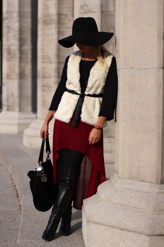 Beginn einer neuen LiebeNein, ich bin kein undankbares Weibsbild und verlasse nach intensiver Unterstützung meinen Schatz. Na ja, eine neue Liebe habe ich schon. Allerdings bezieht sich diese auf Hüte. Durch meinen Post "Fashion Camp Vienna 2013" habe ich meine Liebe zu Hüten (wieder)entdeckt. Eigentlich haben mir Hüte schon immer wahnsinnig gut gefallen. Nur getragen habe ich sie viel zu selten. Das nehme ich jetzt zum Anlass und widme diese Woche Hüten. In meiner "hat collection" werde ich neben dem heutigen wie immer noch zwei weitere Looks zeigen. - Was sagt ihr zu Hüten? Tragt ihr sie gerne?Austrian BlogawardMy dearest guys, I've made it!!! Due to your unbelievable support I'm in the top 10 and nominated for Austria's Blogaward. An expert jury will now evaluate these blogs and will choose the best one. However the jury will judge: I'm already so happy and graceful! I've had the best ever "election campaign team" that can be imagined. I've support from my family, friends, colleagues, neighbours, my pastor (!), readers, followers and other lovely bloggers. So there's not only envy and competitiveness amongst bloggers, but also support and joy over other blogger's success. For example Annette of "Lady of Style" or Filiz von "A little fashion" did an own blogpost or Facebook-post to help me gain votes! By the way - Filiz has made this lovely red leather bracelet of my today's post - check out her DaWanda Shop, it's really worth!