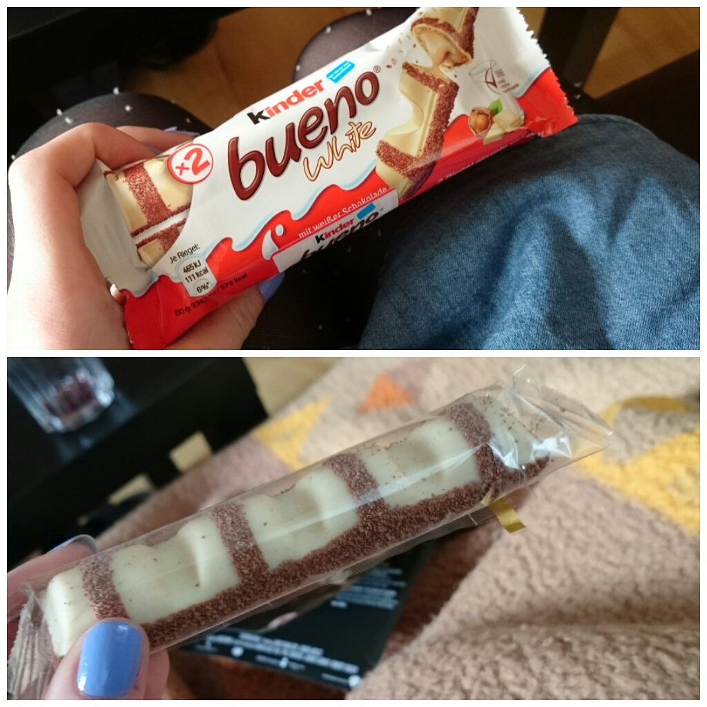 Kennt ihr schon das weiße Bueno? Die haben wir bei Edeka entdeckt, schmecken wie die Happy Hippos mit der hellen Füllung :) Bleibe da lieber beim original Bueno.Dienstag