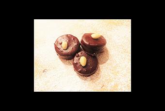 Glasur mittels Wasserdampf in einen flüssigen Zustand bringen und die Kekse Stück für Stück in die Schokolade tauchen. Auf Alufolie zum Trocknen legen. Bevor die Glasur jedoch hart wird, unbedingt die Mandeln auf die Kekserl legen (sonst purzeln sie wieder runter).