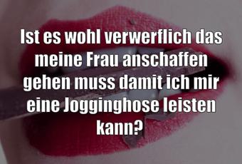 Auf Facebook teilen Vorige Folgende Ist es wohl verwerflich das meine Frau... Autor des Artikels : istdaslustig Zum Original-Artikel Ist es wohl verwerflich das meine Frau anschaffen gehen muss damit ich mir eine Jogginghose leisten kann? Hier geht es zum Artikel Mehr Lustiges auf www.istdaslustig.de Auf Facebook teilen Vorige Folgende Das könnte Ihnen gefallen Mehr