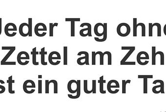 Auf Facebook teilen Vorige Folgende Jeder Tag ohne Zettel am Zeh ist ein guter Tag Autor des Artikels : istdaslustig Zum Original-Artikel Jeder Tag ohne Zettel am Zeh ist ein guter Tag Hier geht es zum Artikel Mehr Lustiges auf www.istdaslustig.de Auf Facebook teilen Vorige Folgende Das könnte Ihnen gefallen Mehr
