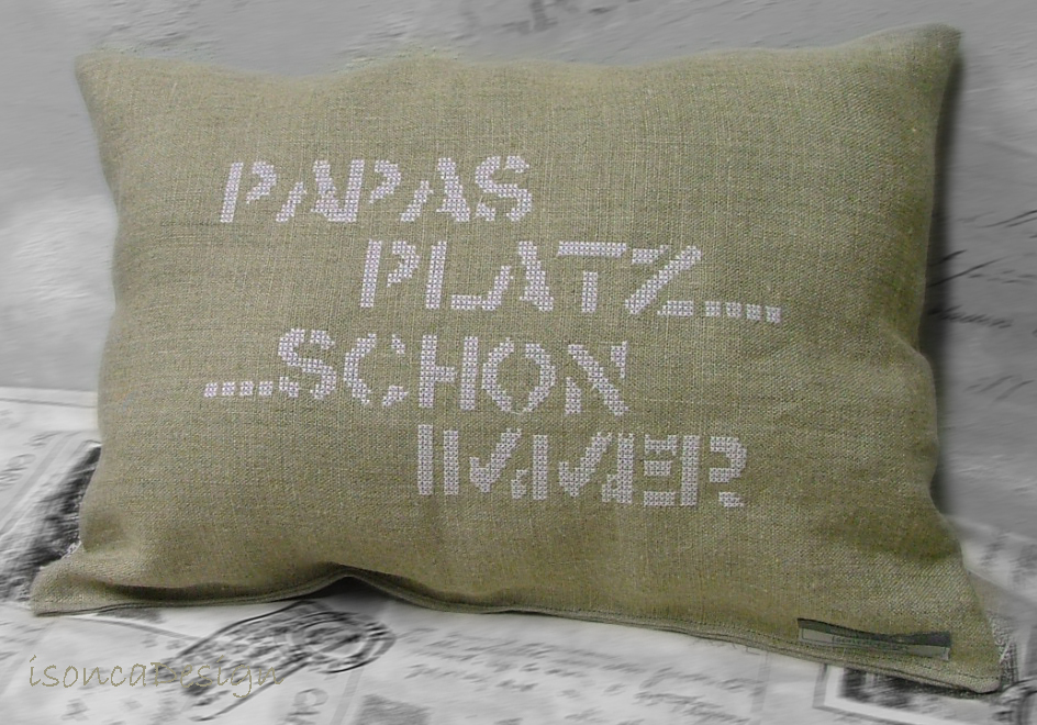 auch besticken. Was den Vorteil hat, dass ich sie auch in anderen Größen anbieten kann. Habe mein erstes Exemplar aus wunderbarem Leinenstoff, dass ich heute mit einem Kreuzstichmuster bestickt habe im Shop eingestellt. Wollt Ihr mal gucken.......