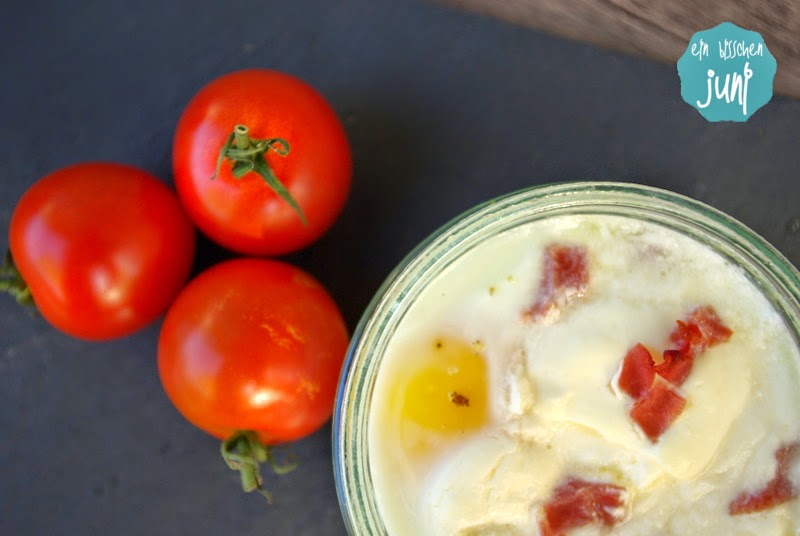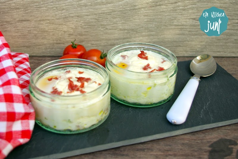 Zubereitung: Zunächst schneidet ihr den Schinken in kleine Würfel. Dann füllt ihr Frischkäse oder Creme fraîche in eure backofenfesten Gläser oder Mini-Auflaufformen, so dass der Boden bedeckt ist und verteilt die Hälfte der Schinkenwürfel auf der Masse. Dann etwas salzen und pfeffern und jeweils ein Ei in das Glas aufschlagen. Nochmal etwas Salz und Pfeffer darauf und den Abschluss bilden ein guter Teelöffel Frischkäse/Creme fraîche und die restlichen Schinkenwürfel.