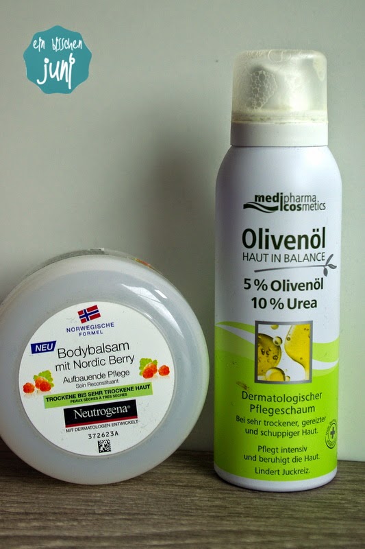 Neutrogena Bodybalsam mit Nordic Berry: Ich bin ja ein Fan der Neutrogena-Produkte und auch den Bodybalsam fand ich toll. Er wird für trockene bis sehr trockene Haut empfohlen, zieht schnell ein und duftet angenehm. Allerdings mag ich Bodylotion generell lieber in der Tube oder im Spender, aber das ändert nichts daran, dass das Produkt empfehlenswert ist!Medipharma Cosmetics Olivenöl Dermatologischer Pflegeschaum: Diesen Schaum hatte ich in einer Wohlfühlbox und er war über die Wintermonate ein gern gesehener Begleiter in meinem Badezimmer! Der Pflegeschaum ist sehr angenehm zum Auftragen, zieht schnell ein und pflegt auch gereizte Haut ganz toll!