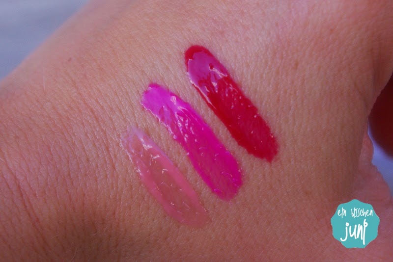 Hier seht ihr weitere Swatches der drei Farben. Der Linke (203) ist dezent, aber trotzdem nicht langweilig. In der Mitte (220) seht ihr einen grellpinken, sehr auffälligen Farbton, den ich vermutlich so nicht im Alltag tragen werde. Ganz rechts ist mein Favorit (213), ein dunkler Pinkton, der zwar auffällt, aber trotzdem alltagstauglich ist. Gerade, wenn man das sonstige Make-Up etwas zurückhaltender gestaltet. Ich bin auf jeden Fall gespannt, welches die weiteren 18 Farben sind, die KIKO ausgesucht hat und werde mich im August definitiv einmal im Online-Shop umschauen. Vielleicht dürfen dann noch weitere Lipglosse bei mir einziehen! Und das will schon was heißen bei mir, da ich eigentlich eher der Lippenstift-Typ bin und es Lipglosse bei mir nicht einfach haben! Seid ihr eher der Lipgloss- oder der Lippenstift-Typ? Werdet ihr euch die KIKO-Glosse anschauen, wenn Sie erhältlich sind? Liebe Grüße schickt euch
