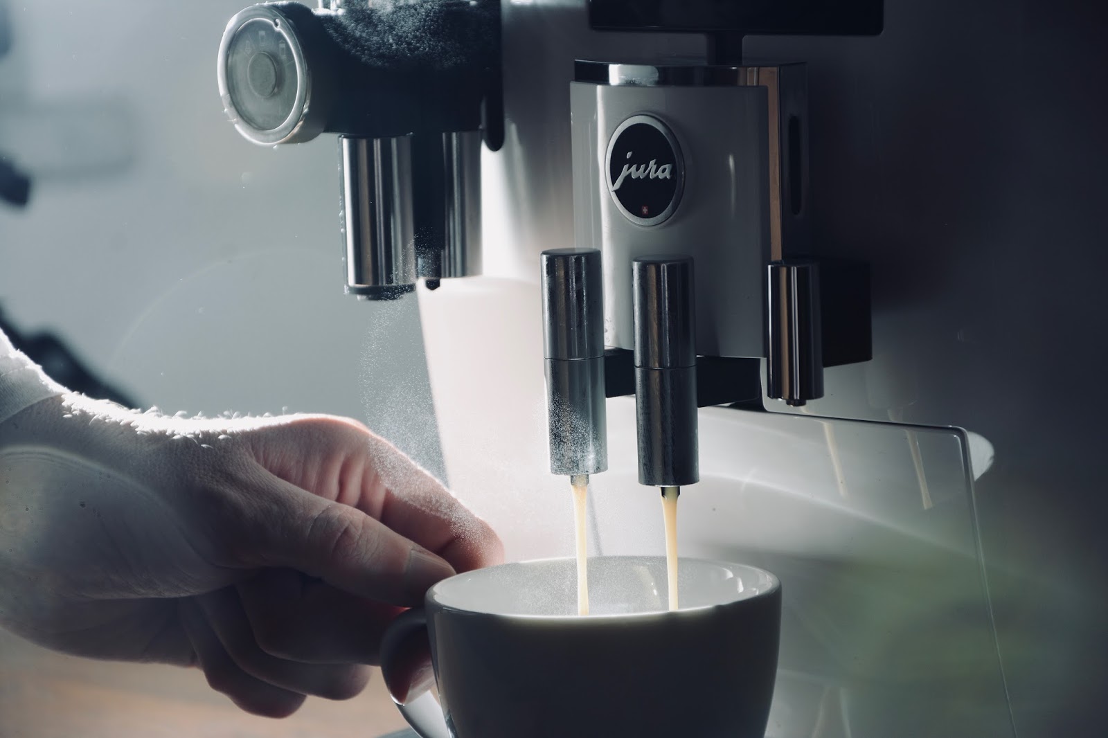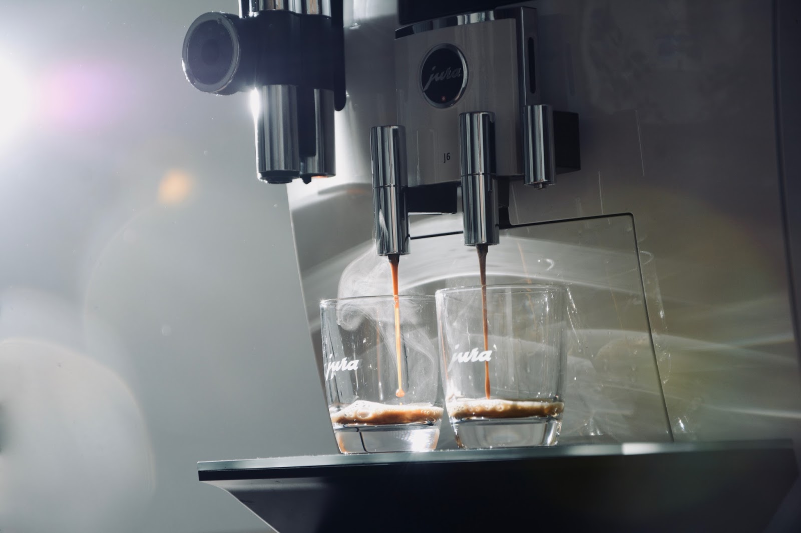 N°2: Die TechnikAnders wie bei anderen Maschinen befinden sich zwei Düsen für die Ausgabe von Getränken auf der Vorderseite. Bei der äußerst linken Düse werden Kreationen mit Milch zubereitet. Hier wird ein Schlauch eingesteckt der direkt in die Milchpackung reicht beziehungsweise an einem Milchkühler angeschlossen wird. Über die mittleren Düsen werden alle andere Getränke ausgegeben, Heißwasser über einen separaten Ausgang. Die Geräuschentwicklung befindet sich im mittleren Bereich. Während des Mahlvorgangs kann man sich problemlos unterhalten. Der Rest geht sehr leise über die Bühne.