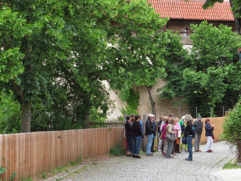 Busreise der Volkshochschule Füssen vom 24.05.2014 nach Nördlingen und zur Abtei Neresheim. [Die Fahrt stand aber nicht unter dem Motto wie meine Überschrift.]Für den Stadtrundgang wurde die Gruppe in 2 Teile aufgeteilt; hier "unsere" Leute im Gerberviertel.