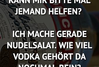 Auf Facebook teilen Vorige Folgende KANN MIR BITTE MAL JEMAND HELFEN? ICH MACHE... Autor des Artikels : istdaslustig Zum Original-Artikel KANN MIR BITTE MAL JEMAND HELFEN? ICH MACHE GERADE NUDELSALAT. WIE VIEL VODKA GEHÖRT DA NOCHMAL REIN? Hier geht es zum Artikel Mehr Lustiges auf www.istdaslustig.de Auf Facebook teilen Vorige Folgende Das könnte Ihnen gefallen Mehr