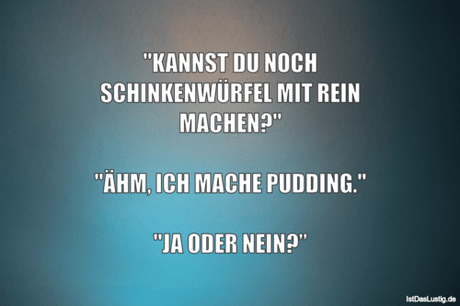 Auf Facebook teilen Vorige Folgende "KANNST DU NOCH SCHINKENWÜRFEL MIT REIN... Autor des Artikels : istdaslustig Zum Original-Artikel "KANNST DU NOCH SCHINKENWÜRFEL MIT REIN MACHEN?" "ÄHM, ICH MACHE PUDDING." "JA ODER NEIN?” Hier geht es zum Artikel Mehr Lustiges auf www.istdaslustig.de Auf Facebook teilen Vorige Folgende Das könnte Ihnen gefallen Mehr