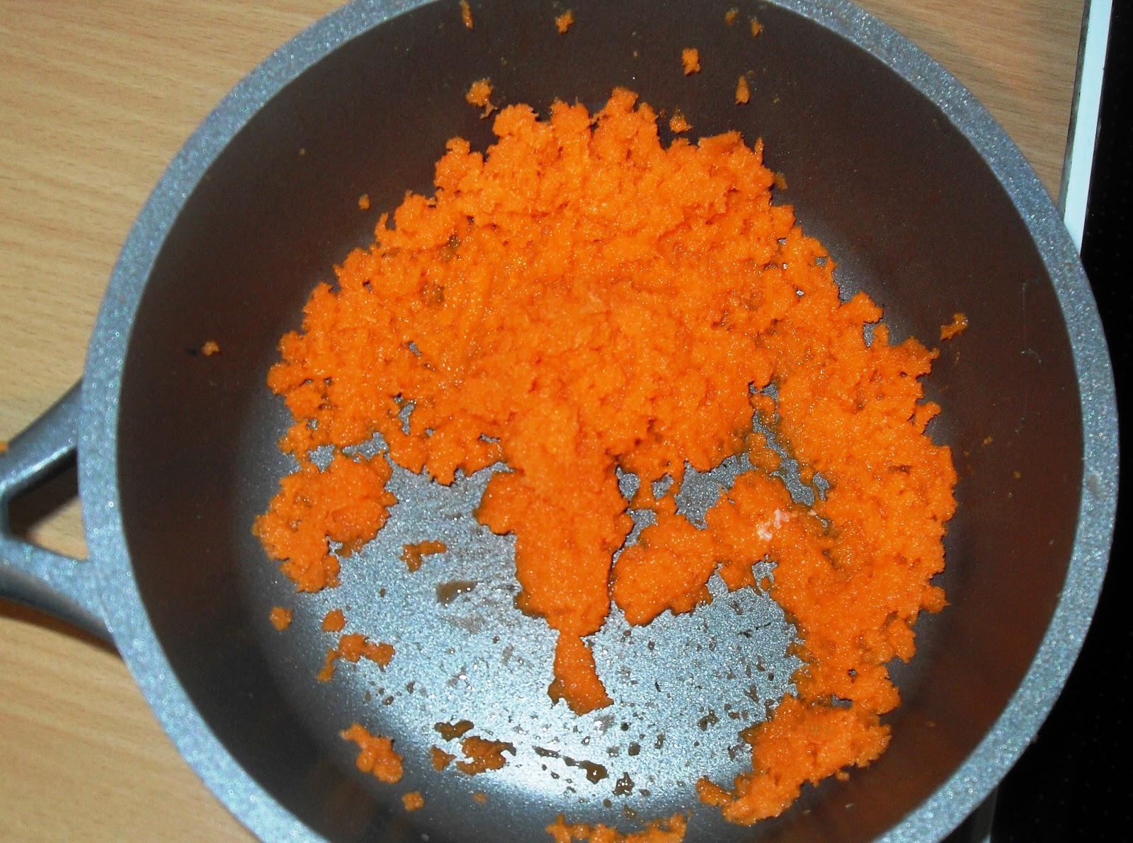 Möhren zusammen mit der Milch aufkochen und dann ca. 20 Minuten auf kleiner Hitze einkochen lassen.