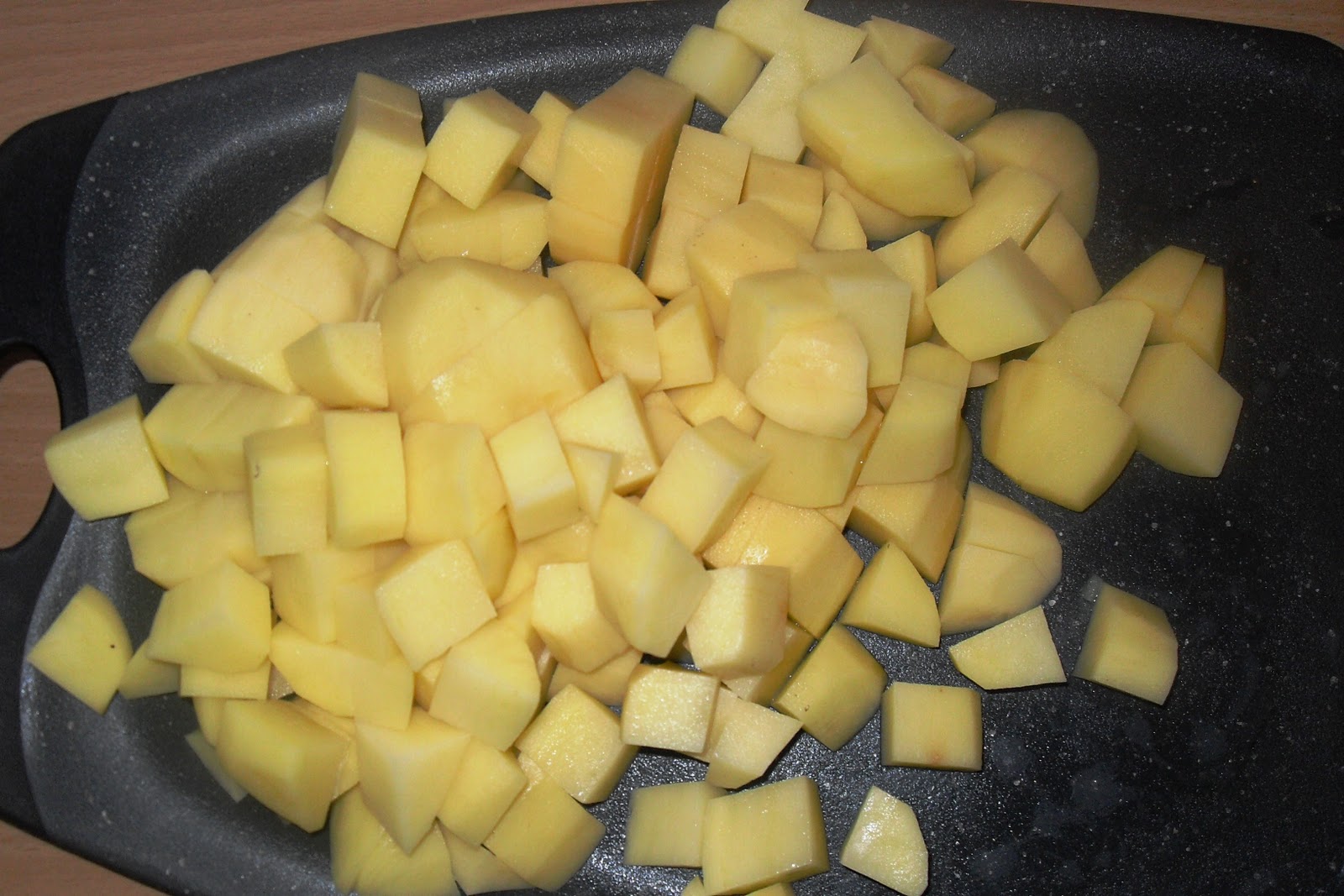 Anmerkungen:- das Rezept ist mal wieder eine Eigenkreation, da ich mich zwischen 3 verschiedenen Rezepten nicht entscheiden konnte :-)- super lecker, sehr würzig und recht schnell vorbereitet- auch die Kinder waren begeistert- anstelle von flüssiger Brühe, nehme ich für gewöhnlich Wasser und entsprechend gekörnte Brühe- die Garzeit kann natürlich, je nach Kartoffelsorte und Würfelgröße, etwas kürzer oder länger sein - ich habe zwischendurch mit einem Zahnstocher probiert, ob die Kartoffeln schon gar sind