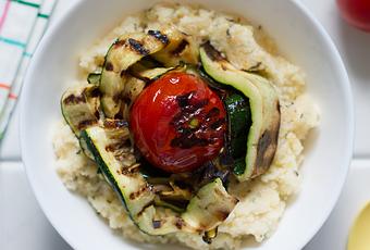 Rezept für Käsepolenta mit gegrillten Zucchini und Tomaten: