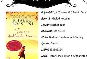 „Tausend Strahlende Sonnen" ist ein ergreifendes, bestürzendes Buch, das die tiefe Liebe des Autors Khaled Hosseini zu seinem Geburtsland intensiv abbildet. Tragischerweise ist die fiktive Geschichte von Mariam und Laila vermutlich kein außergewöhnliches Schicksal. Zwangsehen, brutale häusliche Gewalt, Unterdrückung und Diskriminierung von Frauen sind noch immer Realität in Afghanistan. Umso wichtiger ist es, dass sich Menschen wie Khaled Hosseini für Aufklärung und humanitäre Hilfe einsetzen. Es ist bewundernswert, dass er seinen Worten Taten folgen ließ und seine Stiftung gründete. Tatsächlich beeindruckt mich seine Konsequenz sogar ein wenig mehr als „Tausend Strahlende Sonnen", dem meinem Empfinden nach das gewisse Etwas zu einer 5-Sterne-Bewertung fehlt. Es ist zweifellos aufwühlend, doch es brachte mich widererwartend nicht zum Weinen. Trotz dessen kann ich euch das Buch wärmstens empfehlen. Das Leid des afghanischen Volkes muss gehört und gesehen werden.