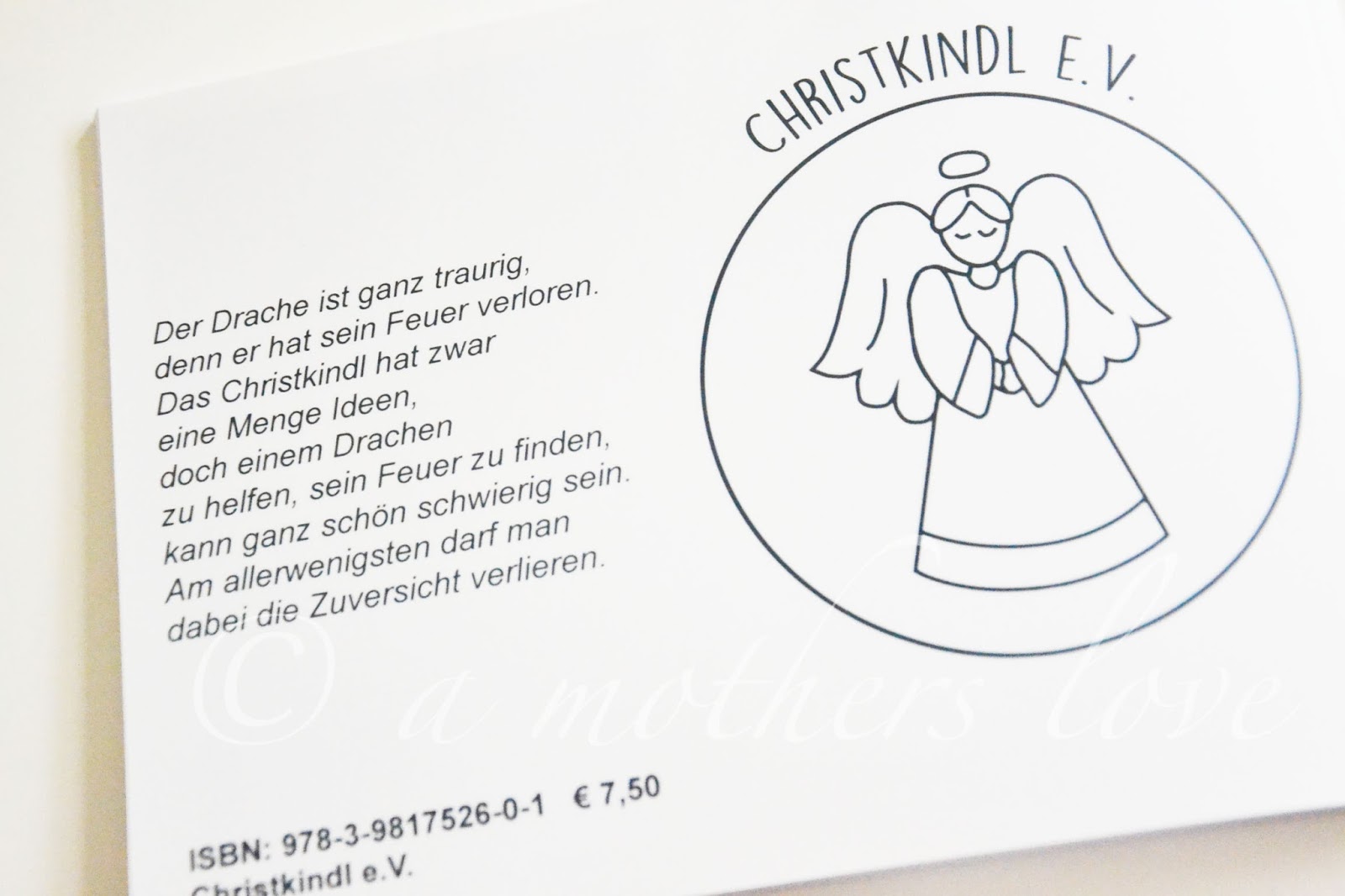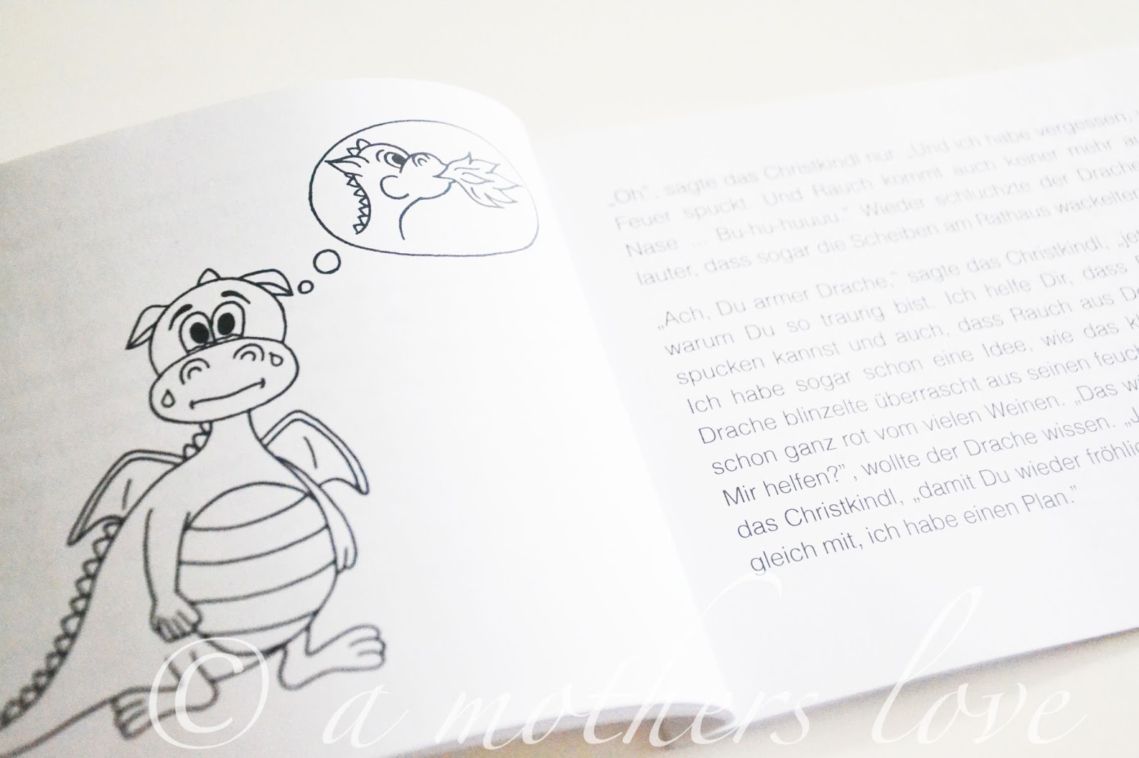 Jeder kann sich an seinen ersten Wunschzettel ans Christkindl erinnern. Und jeder war von der Magie und dem Zauber begeistert, als dann zu Weihnachten DAS eine Geschenk vom Christkindl unterm Baum lag. Leider gibt es aber auch viele Familien, bei denen das Christkindl ein wenig Hilfe braucht. Der Christkindl e.V. liegen genau diese Familien am Herzen. Mit tollen Projekten Unterstützen und Helfen sie dort wo helfende Hände dringend benötigt werden. Dieses Jahr legen sie zum ersten mal eine selbst geschriebene und selbst illustrierte Weihnachtsgeschichte für Kinder zum Ausmalen auf. Die Bilder in der Geschichte können dabei von den Kindern selbst ausgemalt werden. Der Drache ist ganz traurig, denn er hat sein Feuer verloren. Das Christkindl hat zwar eine Menge Ideen, doch einem Drachen zu helfen, sein Feuer zu finden, kann ganz schön schwierig sein. Am allerwenigsten darf man dabei die Zuversicht verlieren.